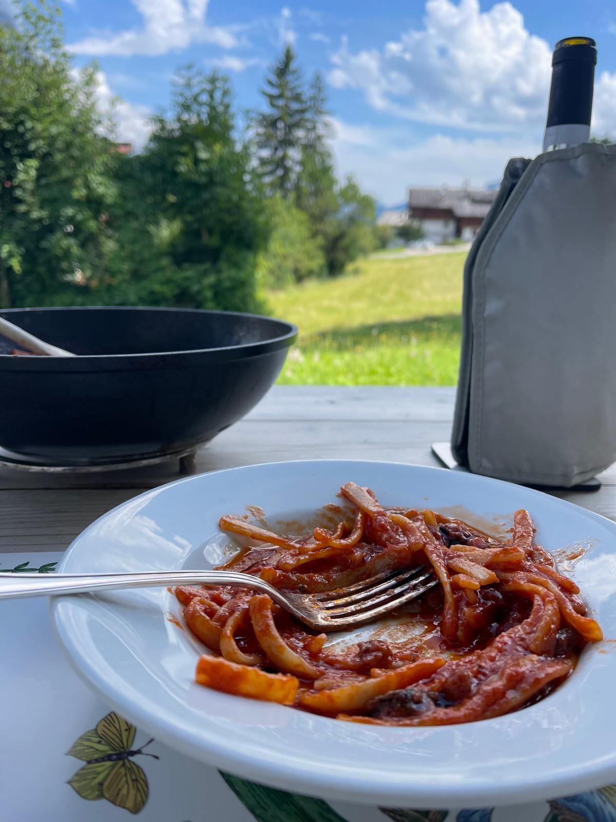 This is not a restaurant and not a formal culinary experience. It is an evening spent around a family table, where food becomes a way to share time, stories and warmth after a day in the mountains.